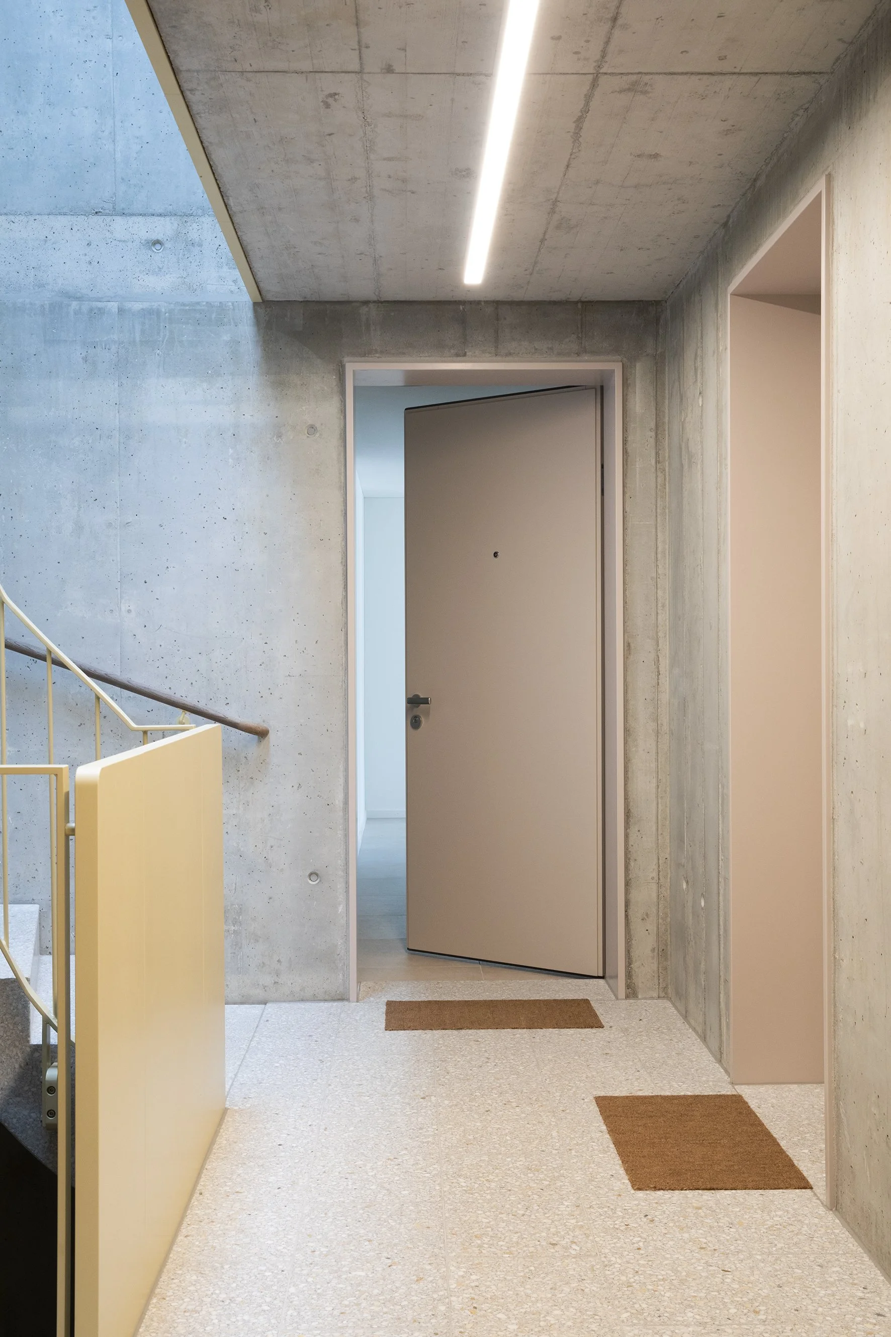 Die Wohnungen sind grosszügig geschnitten und in hellen, warmen Farben gehalten. Grosse Balkone öffnen den Innenraum nach aussen und schaffen fliessende Übergänge zwischen Wohnen und Natur. Eine mediterrane Leichtigkeit prägt die Atmosphäre – offen, hell und einladend.